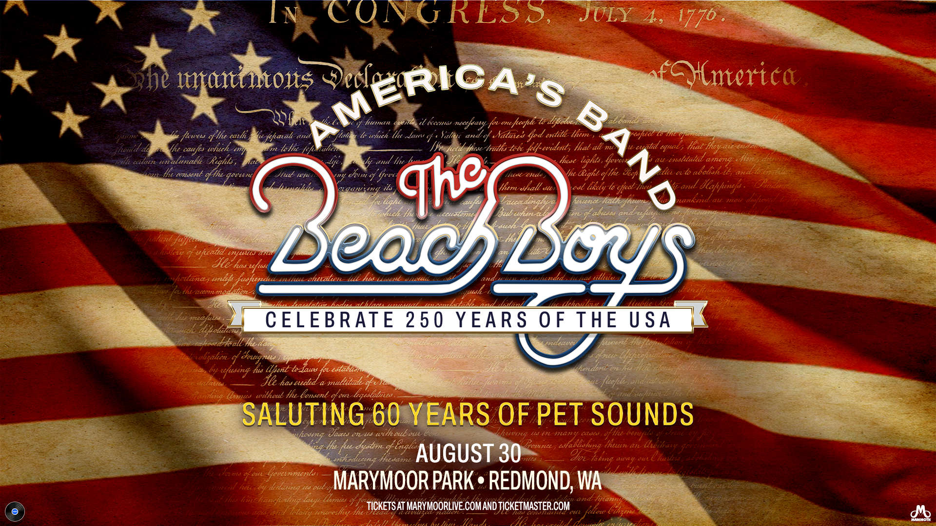 America's Band - The Beach Boys - Celebrate 250 Years of the USA this summer with a show at Marymoor Park in Redmond, WA. The Beach Boys are Saluting 60 Years of Pet Sounds - widely regarded among the greatest and most influential albums in music history. Click the link for tickets & info about this exciting show! Tickets On-Sale Friday, March 13th at 10am.